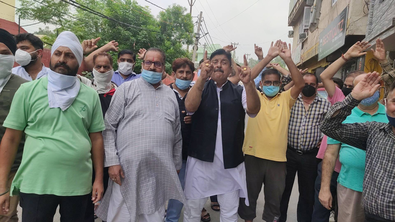 JAMMU, Aug 11: Traders and residents of Ward 16 today staged protest rally against Jammu Municipal Corporation (JMC) for shortening the road’s width of State Motor Garage and Army Defence road, here today.