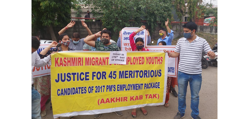 JAMMU, Apr 6: The ongoing protest of 45 aggrieved left out PM package aspirants entered into 170th day at Exhibition Ground near Press Club here, today.