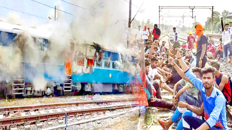 Protesters torch train in Bihar on Thursday during protest against the Centre’s new Agnipath scheme. By Daily Excelsior - June 17, 2022 Share FacebookTwitterWhatsAppPinterestLinkedinCopy URLTelegramEmailTumblrReddItPrintKoo Protesters torch train in Bihar on Thursday during protest against the Centre’s new Agnipath scheme. Protesters torch train in Bihar on Thursday during protest against the Centre’s new Agnipath scheme. Follow our WhatsApp channel