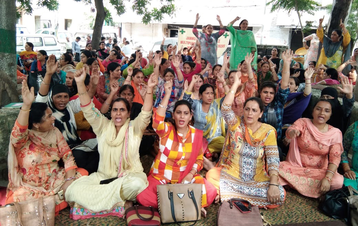 JAMMU, Oct 4: The ongoing protest dharna by Female Multipurpose Health Workers Association entered into 39th day today in all Districts and Tehsil levels, including Sunderbani, Rajouri, Reasi, Banihal, Ramban, Kishtwar, Doda, Bani, Basholi, Padder and Kathua.