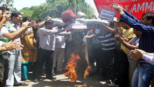 Protesting JU employees torching effigy in the campus on Tuesday. By Daily Excelsior - May 29, 2013 Share FacebookTwitterWhatsAppPinterestLinkedinCopy URLTelegramEmailTumblrReddItPrintKoo Protesting JU employees torching effigy in the campus on Tuesday. Follow our WhatsApp channel