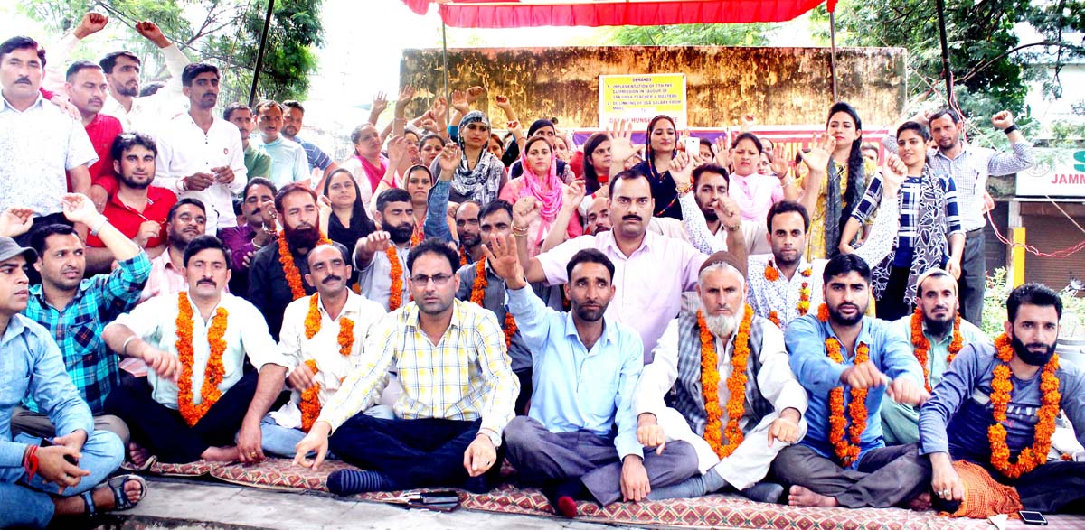 The teachers who began their fast this morning for the next 24 hour, included Bashiru ud Din, Tahir Hussain, Mushtaq Ahmed, Mohd Bashirt, Surinder Singh, Narjan Singh, Mohd Jamir Wani, Mohd Asaqe, Mohd Farroq, Shavir Ahmand, Mohd Akhtar, Nagir Ahmand and Gulam Mahudin