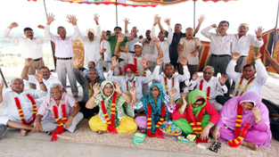 Protestors raising slogans during chain hunger strike at Jammu on Sunday. -Excelsior/Rakesh