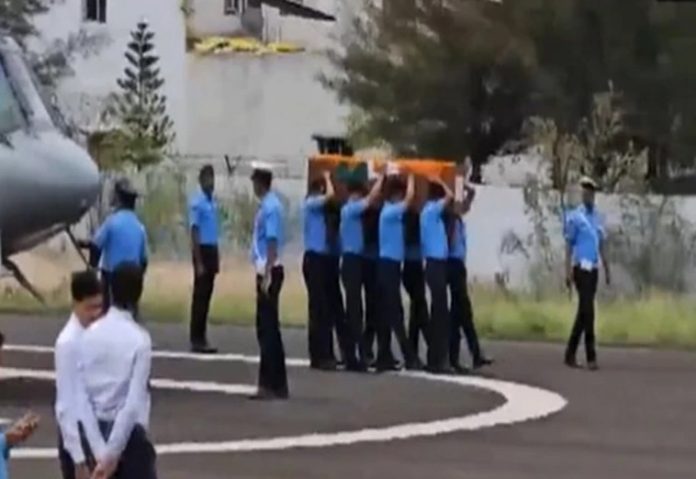 Chhindwara (MP), May 6: The mortal remains of an Indian Air Force soldier, Corporal Vikky Pahade who succumbed to injuries sustained in a terror attack on Saturday evening, arrived in his hometown in Madhya Pradesh’s Chhindwara for last rites on Monday.