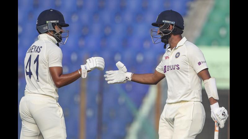 CHATTOGRAM, Dec 14: Cheteshwar Pujara injected a fresh lease of life into his uncertain international future with a dogged 90 while Shreyas Iyer enjoyed a reprieve to remain unbeaten on 82 in India’s underwhelming opening day score of 278/6 against Bangladesh in the first Test.