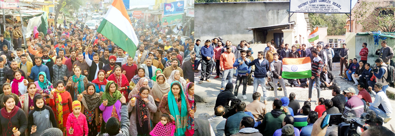 JAMMU, Feb 16: Protest demonstrations were held and candle light processions taken out at different parts of Jammu region today to register anguish against terror attack on CRPF convoy at Pulwama on February 14 and also for paying respect to the martyrs.