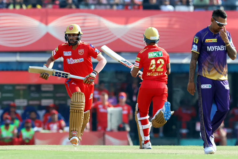 Punjab Kings’ players running between the wickets during a match against KKR at Mohali on Saturday. By Daily Excelsior - April 2, 2023 Share FacebookTwitterWhatsAppPinterestLinkedinCopy URLTelegramEmailTumblrReddItPrintKoo Punjab Kings’ players running between the wickets during a match against KKR at Mohali on Saturday. Punjab Kings’ players running between the wickets during a match against KKR at Mohali on Saturday. Follow our WhatsApp channel