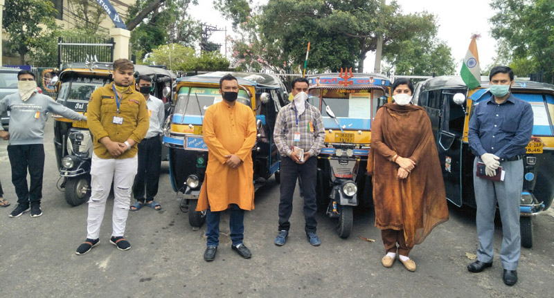 JAMMU, Apr 7: Adv. Purnima Sharma, Deputy Mayor JMC along with councilor Ward No.19, Amit Gupta flagged off five Autos in providing service to people to visit hospitals in the time of emergency.