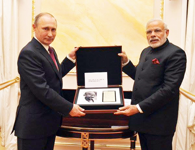 MOSCOW : A page from Mahatma Gandhi’s diary containing his handwritten notes and an 18th century sword from Bengal has been presented to Prime Minister Narendra Modi by Russian President Vladimir Putin.