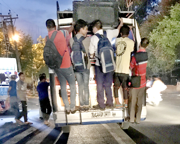 Putting Lives To Risk: Negligence of Traffic Police has been putting lives of school kids to risk on Akhnoor road. -Excelsior/Rakesh