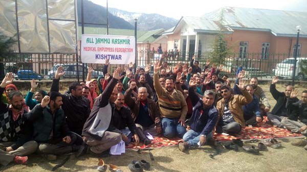 Putting lock on SDM office, people sitting on dharna outside office on 4th consecutive day at Thannamandi in Rajouri. -Excelsior/Bhat