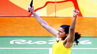 PV Sindhu of India celebrates after winning her semi-final match against Nozomi Okuhara of Japan. By Daily Excelsior - August 18, 2016 Share FacebookTwitterWhatsAppPinterestLinkedinCopy URLTelegramEmailTumblrReddItPrintKoo PV Sindhu of India celebrates after winning her semi-final match against Nozomi Okuhara of Japan. Follow our WhatsApp channel