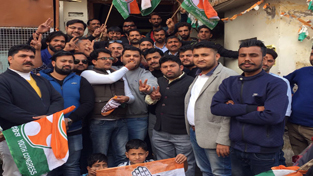 The Youth Congress leaders and workers led by PYC president Pranav Shagotra held celebration at the PCC headquarters here today over the victory of the party in Punjab where ruling SAD-BJP received crushing defeat. Similarly, in Goa also the ruling BJP has lost and Congress has emerged as single largest party along with Manipur. Out of the five states which went to polls, congress has managed victory in three, two of which are BJP ruled States.
