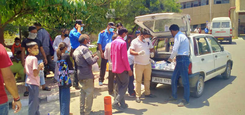 Youth Congress activists distributed packed food among the needy people and attendants of COVID patients at GMC Jammu.