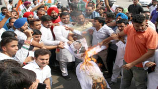 Youth Congress activists also burnt effigy of Pakistan Prime Minister, Nawaz Sharief for supporting and harbouring terrorism.
