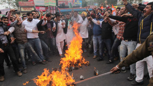A large number of PYC activists under the leadership of Pradesh Youth Congress chief,  Pranav Shagotra assembled near Press Club here in the morning and started protest demonstration against Modi Govt at the Centre and PDP-BJP Govt in the State. They demanded that names of both the BJP ministers involved in real estate scandal worth Rs 13 crore and seizure of Rs 5 crore currency from escort vehicle be made public.  They said that action should also be taken against the BJP MLC who offered bribe for getting his flats projects cleared from H&UD Ministry and also police officials who did not seize the vehicle of the BJP Minister carrying huge cash.