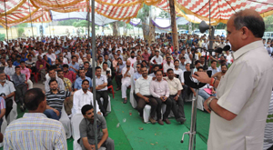 Deputy Chief Minister Tara Chand addressing education conference at Khour on Monday.