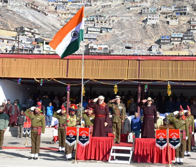In Leh, the main function was held at Historic Polo Ground where Chief Executive Councilor LAHDC, Dr Sonam Dawa Lonpo unfurled the National Tri-Colour and took salute at the march past by the contingents of police, paramilitary, NCC and school children.