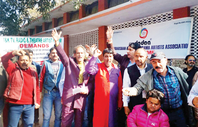 JAMMU, Feb 18: The radio and TV Artists of the State held a protest demonstration at Exhibition Ground here today against the failure of Prasar Bharti for stopping commissioned programmes by Kashir channel for years together.