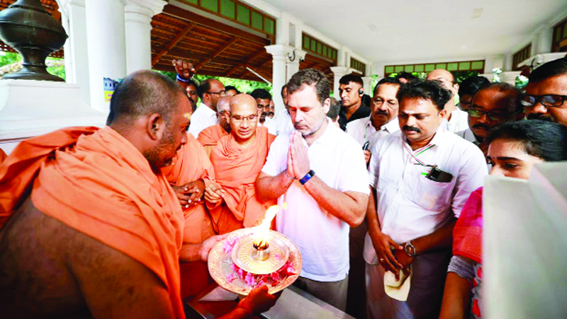 At Sivagiri Mutt, Gandhi met the swamis there and offered prayers to the saint reformer before commencing the fourth day of the Kerala leg of the Congress party’s 3,570 kilometres and 150-day long foot march which started off from Kanyakumari in Tamil Nadu and will conclude at Jammu and Kashmir.