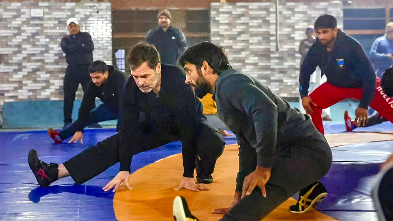 New Delhi, Dec 28: Congress leader Rahul Gandhi had demonstrated his Jiu-Jitsu skills while engaging in a martial art bout with wrestler Bajrang Punia during his visit to the Virendra Akhara in Haryana’s Jhajjar district amid the row over Wrestling Federation of India elections.