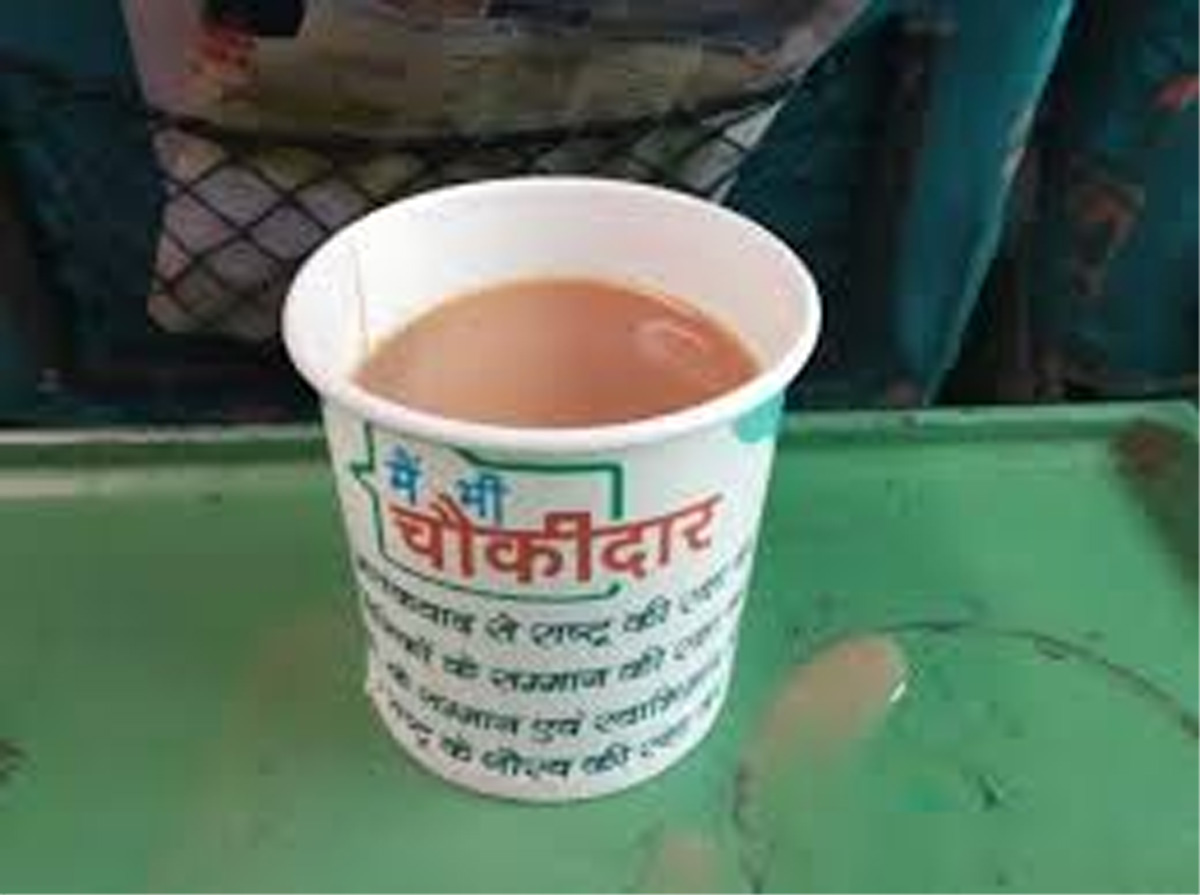 NEW DELHI, Mar 29: The Railways found itself caught on the wrong side of the model code of conduct yet again when passengers on Friday reported that tea was being served in paper cups with “main bhi chowkidaar” (‘I’m also watchman’) written on them.