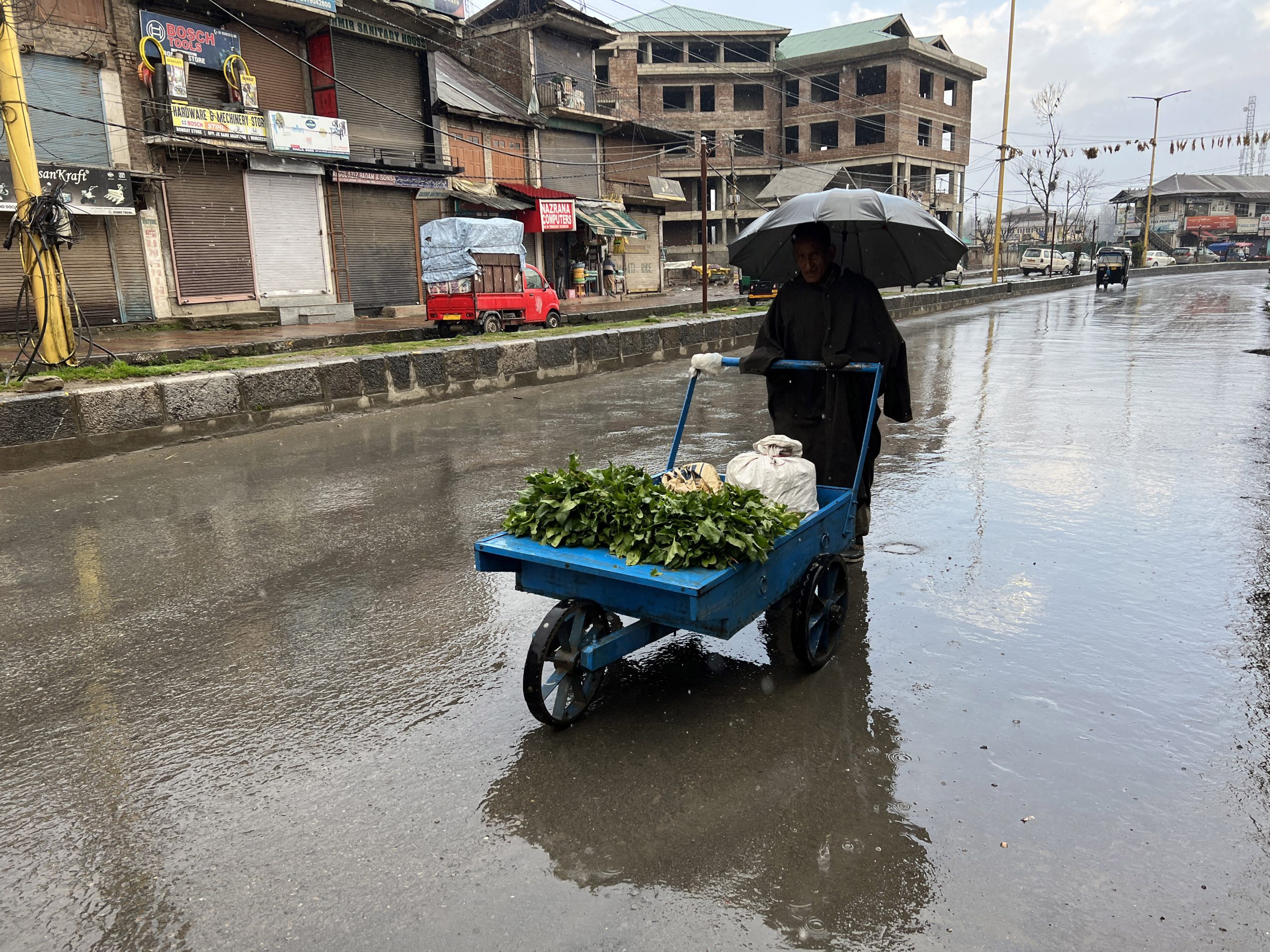 A man sale vegitables on a rainy day, in Srinagar. (File Pic)