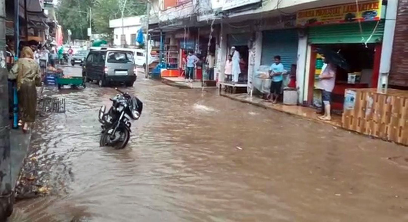 Due to choked drains, the water was flowing in the lanes and main bazaar. The water level at many places for 1.5 to 2 ft and it entered many shops destroying goods of the traders.
