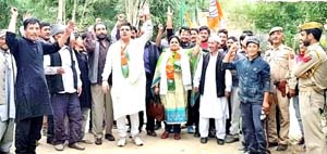 KARGIL, (LADAKH), Aug 7: Intensifying party’s campaign to secure victory in Ladakh Autonomous Hill Development Council (LAHDC), Kargil,  BJP State president, Ravinder Raina (MLA) along-with senior party leaders, including party State spokesperson, Priya Sethi (MLA), Haji Khudaam, Zakir Zakiri and Kargil Mahilla Morcha president, Leela Bano reached Sankoo Valley and addressed the rallies there.