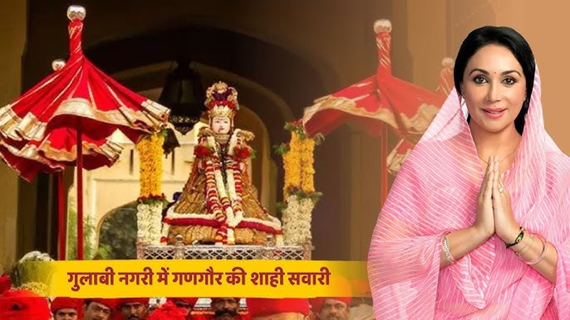 Later, a royal procession was taken out from Tripolia Gate with the entourage, where his son Padmanabh Singh also performed the customary puja of Gangaur Mata.