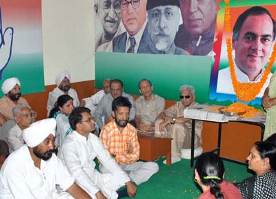 Pradesh Youth Congress also organized separate function under the leadership of Manjit Singh Jatt at the party office. The PYC workers paid floral tributes to late Rajiv Gandhi and pledged to work for strengthening the party and follow the ideals of late Gandhi. Kamaljeet, Vijay Magotra Ricky Malhotra, Pankaj Chibber, Vivek and others were also present.