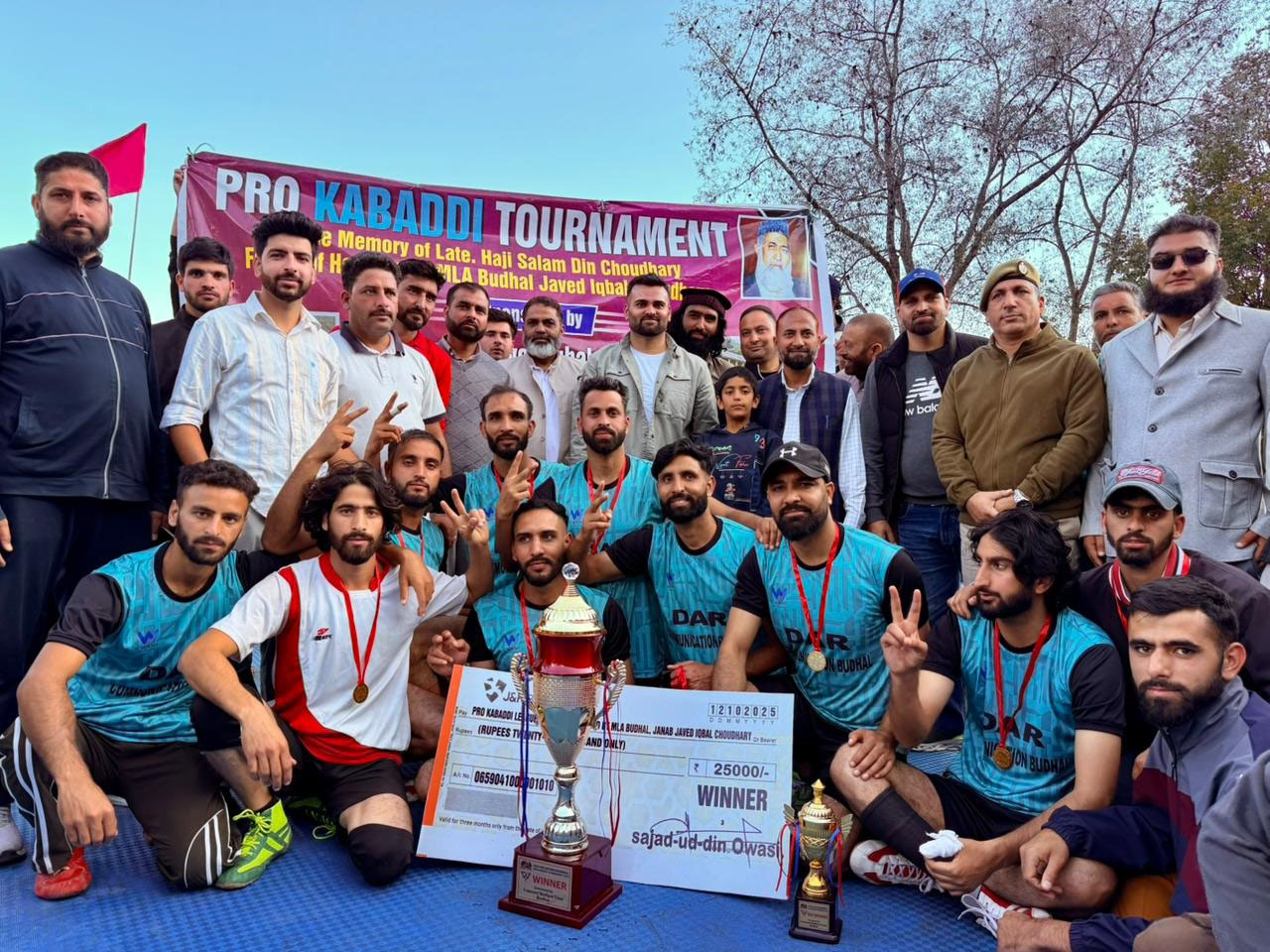RAJOURI, Oct 12: The grand finale of the Haji Salam Din Memorial Pro Kabaddi League 2025 concluded with great excitement at Government High School Ground, Budhal, where Rajput Warriors defeated Peer Panjal in a thrilling match to lift the title. The 12-day event, which started on October 1, featured 12 teams, 18 league matches, two quarter-finals, two semi-finals and the grand final.