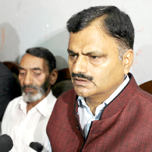 MLA Mendhar, Javed A Rana, addressing a press conference at Jammu on Sunday.