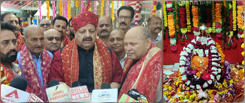 Rana exhorted the people to join the ensuing Yatra on the ancient route. “The heritage route passes through Jagdamba Mata Kheer Bhawani Temple – Jagti, Durga Mata Temple – Pangali, Shiv Temple – Thandapani – Drabi, Shiv Shakti Temple, Raja Mandleek Temple- and Raja Nowalgarh Temple – Marh, Drabi, Kali Mata Temple – Gundla Talab, Ram Darbar, Shiv Temple- Bamyal and Oli Temple Chhapanoo-Bamyal before reaching the sanctum sanctorum of the Bhawan of Mata Rani on Trikuta Hills,” he said while joining hundreds of devotees to offer prayers on the auspicious occasion of the first Navratra at Kol Kandoli Temple.