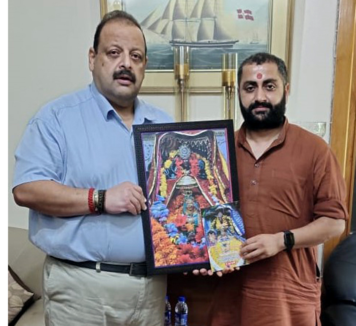 Earlier Pandit Tript Shastri also presented a book -Shri Mal Mata Sukrala Devi Ji Ka Ethihas Aur Pooja Vidhi to Mr Rana.