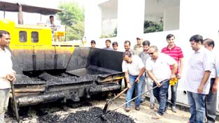 BJP MLC, Vikram Randhawa kick starting blacktopping of road at Channi Himmat on Friday.