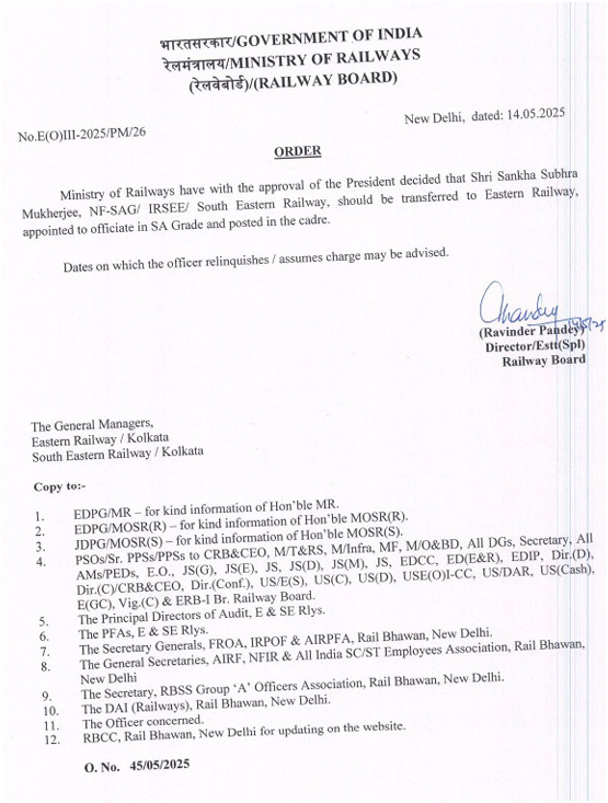JAMMU, May 15L Ranjan Prakash Thakur, who is presently working as Chief Vigilance Officer (CVO) at Oil and Natural Gas Corporation (ONGC), has been transferred to Indian Railways Institute of Transport Management (IRITM) and appointed as Director General.