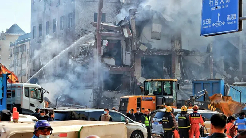 The blast that rocked a fried chicken shop in Yanjiao township in the city of Sanhe, near Beijing, on Wednesday is suspected to have been caused by a gas leak.