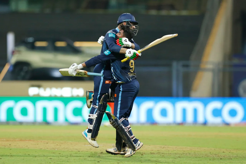 Having got himself two fours, GT skipper Hardik Pandya was done in by Umran’s bounce as he top-edged one to the third man.
