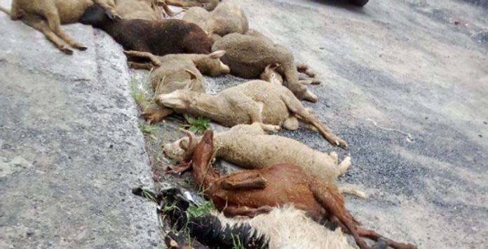 RAMBAN, Oct 3: A rashly driven vehicle of Tempo Traveller make hit a herd of sheep-goats at Duggi Pulli area of Chanderkot this morning killing 15 sheep and goats and injuring many others.