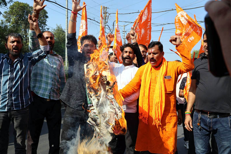 Carrying an effigy of Abdullah, they raised slogans against Pakistan, NC and Abdullah.