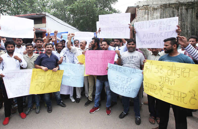 Carrying banners with slogans written against Delhi Government and Delhi Development Authority (DDA) on them, the devotees of Shri Guru Ravi Dass held demonstration and demanded the Government of India to intervene into the matter and restore land to Guru Ravi Dass Sabha to build temple.