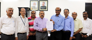 A delegation of Reserve Bank of India officials handing over a memorandum to the Union Minister Dr Jitendra Singh at New Delhi.