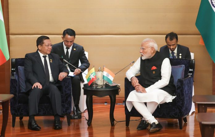 Modi met Senior General Min, the head of Myanmar’s military government, on the sidelines of the Summit meeting of the leaders of the Bay of Bengal Initiative for Multi-Sectoral and Technical Cooperation (BIMSTEC) grouping.