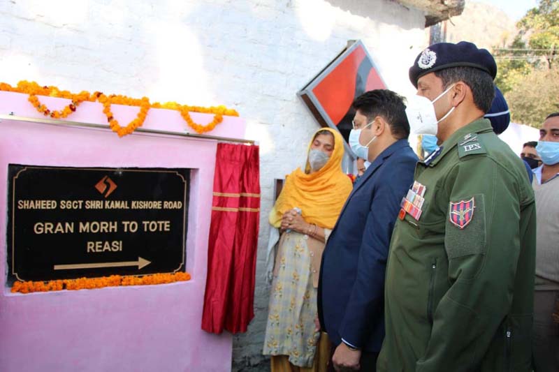 Chairperson DDC Reasi Saraf Singh Nag and Officers of Jammu Province including ADGP Jammu Zone Mukesh Singh, Divisional Commissioner Jammu Raghav Langer dedicated the road in the name of the martyr.