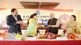 Rector kathua Campus Prof Neelu Rohmetra presenting memento to JU VC Prof R D Sharma during inaugural function of ANUSHTHAN 2014 on Wednesday.