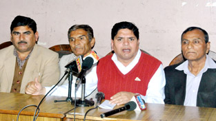 Refugee leaders at a press conference at Jammu on Monday. -Excelsior/Rakesh