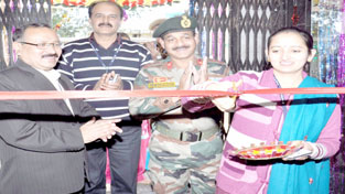 Regional Head of SBI Rajesh Anand, Chief Manager Sunil Sharma and Dy GOC Brig JS Rajpurohit inaugurating SSK & CVM on Thursday.