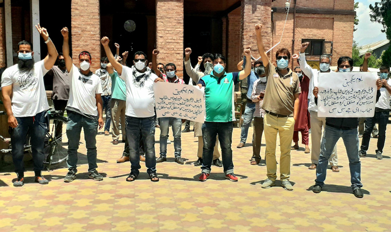 Srinagar, June 16: Employees Joint Consultative Committee (EJCC), Kashmir today held a peaceful protest demonstration here within the premises of the Directorate Food Civil Supplies and Consumer Affairs Kashmir and demanded regularization of services of 60, 000 temporary employees.