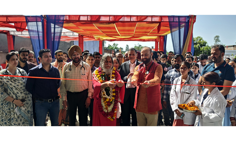 JAMMU, Mar 31: With the aim of making masses aware of the blooming pandemic of cardiac ailments and to educate them to adopt cardiac friendly lifestyle, Head Department of Cardiology GMCH Jammu in association with SVS Charitable Trust held a day long cardiac awareness cum health check up camp at Devipura area of Akhnoor. The camp was inaugurated by Shri Shri 1008 Swami Vishwatamanand Ji Maharaj along with Dr Sushil Sharma amidst chanting of vedic slogans. More than 2000 people benefitted from the health checkup camp. Free medicines were given as per advice. Important body tests viz., ECG, Lipid-profile, BMD, Blood sugar were also done.